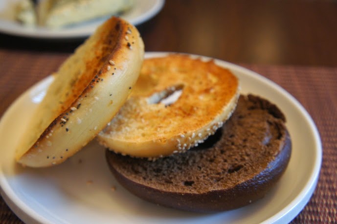 We picked this double cream brie-like cheese for our breakfast bagels. The garlic and herb flavor was mild, so it was fine for morning. And the cheese was creamy and spreadable on toasted bagels.