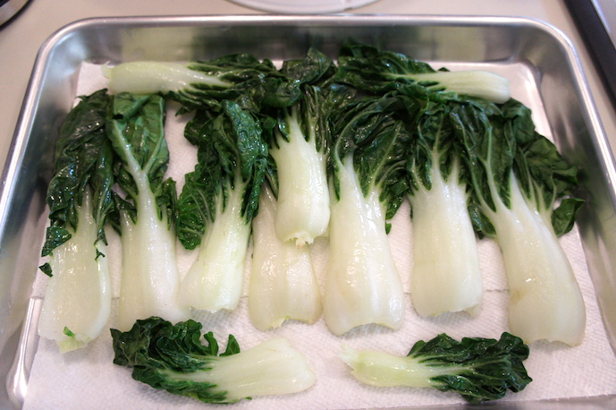 Along with Kimchi, J has another item on his shopping list when we visited Union Market - duck breasts. We bought duck breasts there before, which became our New Year's Eve dinner. J's passion to duck came back. How should we cook them this time? We flipped my cooking books and Gordon Ramsay's recipe obtained our votes. It wasn't fresh cherry season, so I bought frozen sweet cherries. We followed Gordon's side dish for the duck recipe - braised bok choy. I like bok choy but haven't had the green for a while. A good choice!